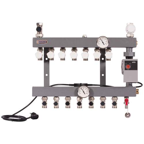 Deze Henco stalen vloerverwarmingsverdeler is voorzien van een A-pomp en een LTV-inregelventiel. Deze stalen verdeler is geschikt voor zowel woningbouw als utiliteitsbouw. De verdeler kan gebruikt worden voor zowel hoofd- als bijverwarming bij diverse HR-ketels (volgens regelgeving GIW/ISSO...