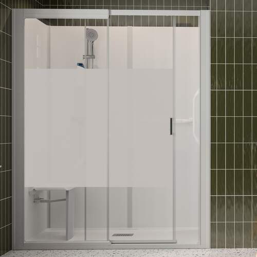Met de Kinemagic Serenite+ serie vervang je eenvoudig je bad in een comfortabele en veilige douchecabine. De Kinemagic Serenite+ kan alleen geleverd worden met schuifdeur in helder of decor glas. De douchebak is extra vlak en heeft een hoogte van 3,8 cm en een antislipbehandeling. De douchecabine wordt geleverd met een Grohe thermostaatkraan, glijstangset met flaconhouder, douchezitting opklapbaar en 3 ergnomoische comfort grepen voor steun en eenvoudig in- en uitstappen.