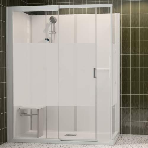 Met de Kinemagic Serenite+ serie vervang je eenvoudig je bad in een comfortabele en veilige douchecabine. De Kinemagic Serenite+ kan alleen geleverd worden met schuifdeur in helder of decor glas. De douchebak is extra vlak en heeft een hoogte van 3,8 cm en een antislipbehandeling. De douchecabine wordt geleverd met een Grohe thermostaatkraan, glijstangset met flaconhouder, douchezitting opklapbaar en 3 ergnomoische comfort grepen voor steun en eenvoudig in- en uitstappen.