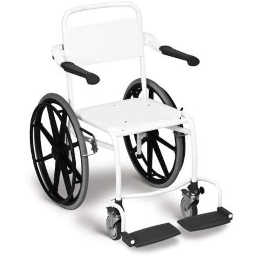 Linido douchestoel (zelfrijder) met verstelbare en opklapbare voetsteunen, zithoogte 49 cm, staal gecoat wit