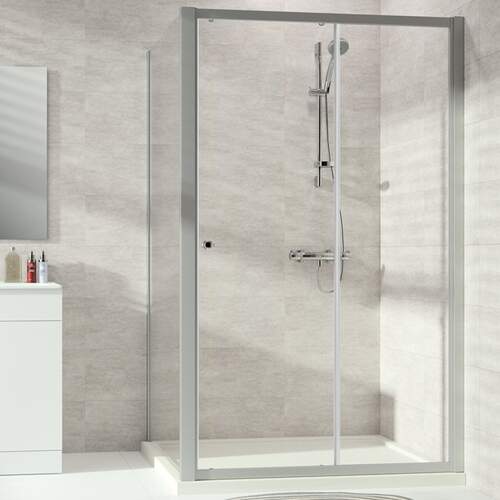 Huppe Alpha 2 schuifdeur 1-delig met vast segment 120 x 190 cm zilvermat/helder