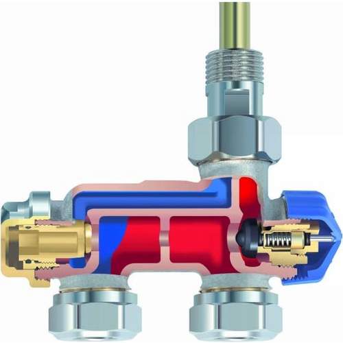 Heimeier E-Z onderblok 1-pijps recht 1/2", met injectiebuis