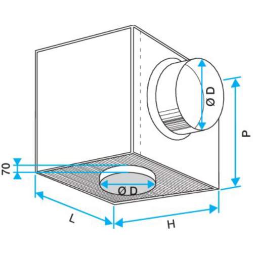 Aldes SC 831 plenumbak 420 x 420 mm, Ø355 mm, met zijaansluiting, staal