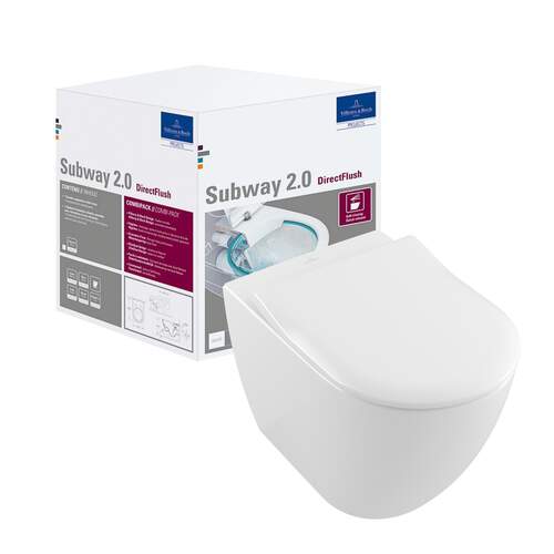 Villeroy & Boch Subway 2.0 combi-pack wandcloset DirectFlush, Slimseat closetzitting met softclose, wit