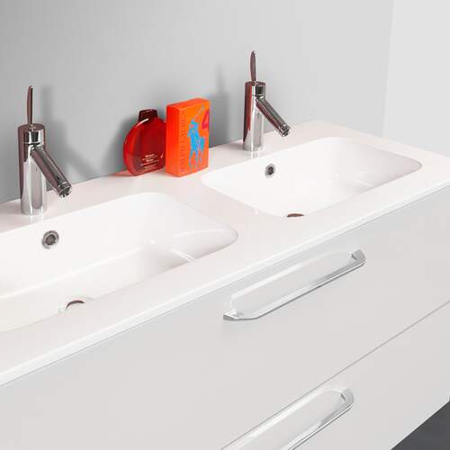 Detremmerie No Limit 45 wastafel (23) dubbel 120,5 x 45 cm met 2 kraangaten en overloop, kunstmarmer wit