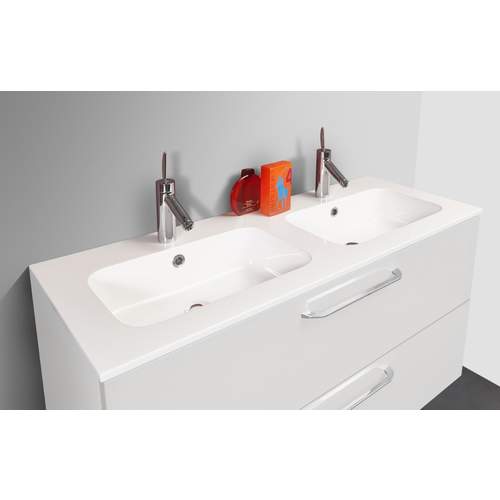 Detremmerie No Limit 45 wastafel (23) dubbel 120,5 x 45 cm met 2 kraangaten en overloop, top solid wit