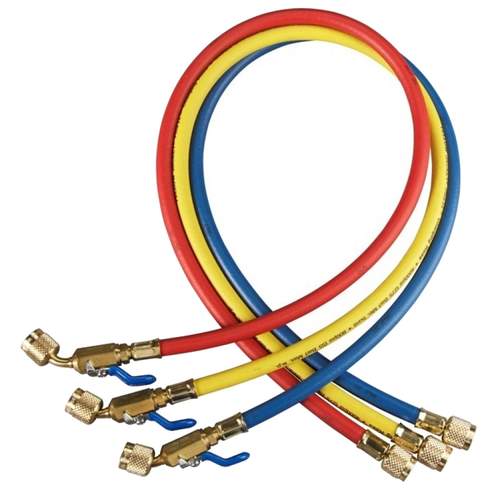 Yellow Jacket slangenset 1x 45° met kogelafsluiters rood/blauw 5/16" x 1/4" + geel 1/4" x 1/4" l=1,5 m (A1/A2L/A3)