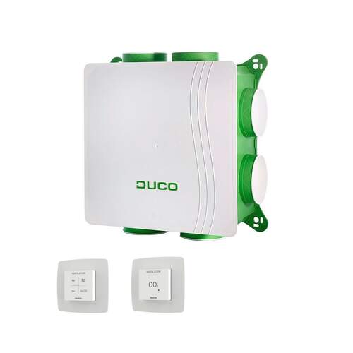 De DucoBox Silent is een compacte, duurzame en uiterst en uiterst energiezuinige afzuigunit, ontwikkeld voor toepassing binnen Duco’s Vraaggestuurde Natuurlijke Ventilatiesystemen (VNV) en voert de vochtige en/ of vervuilde lucht af wanneer dat nodig is en in de juiste hoeveelheid. De DucoBox Silent maakt gebruik van slechts één printplaat voor zowel de regel- als besturingselektronica. De eenvoudige constructie en efficiënte gelijkstroommotor staan garant voor een lange levensduur.
