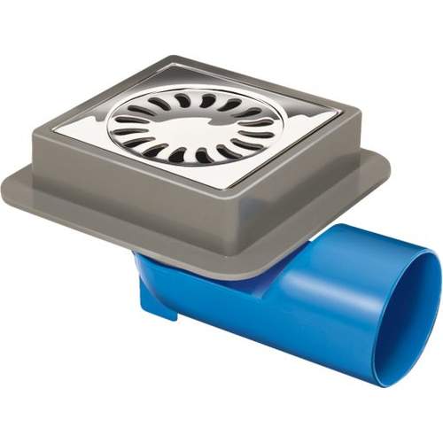 Van den Berg abs doucheput 96x96 mm met rvs rooster, zijuitlaat