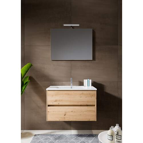 Comfort Line York badmeubelset 80 cm 2 laden naturel eiken, inclusief wastafel en spiegel met lamp