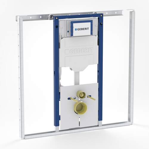 Geberit Duofix set element voor wand-wc, 112 cm, met Sigma inbouwreservoir 12 cm, wandanker en geluidisolatieset met systeemprofielen voor plachethoge voorzetwand.