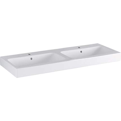 Geberit iCon dubbele wastafel 120 cm met 2 kraangaten en overloop wit