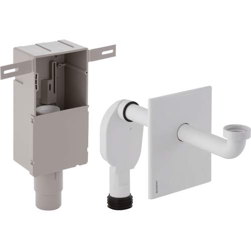 Geberit wastafel inbouwsifon met inbouwbox en afbouwset, afvoer horizontaal, rvs geborsteld