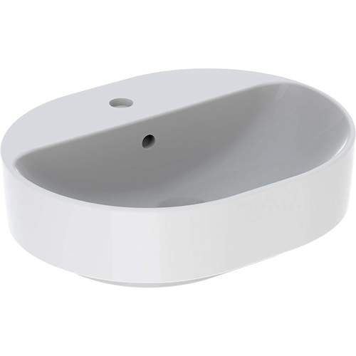 Geberit Variform opzetwastafel 50 ellipsvorm met kraangat en overloop wit