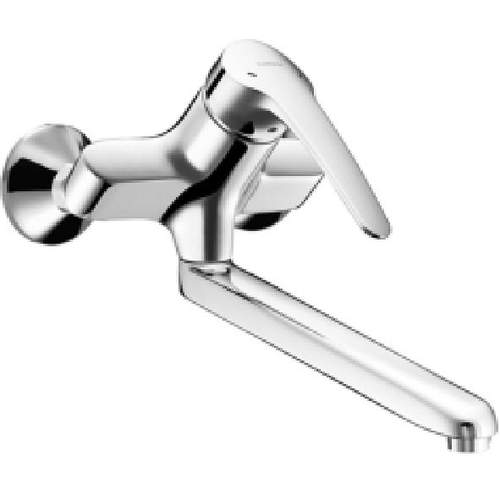 Hansa Medica wandmengkraan voor wastafel uitloop 120° draaibaar of vergrendelbaar in middenstand uitloop 300mm verchroomd met lange bedieningshendel
