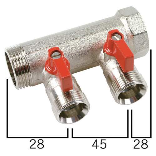 Henco verdeler 4-groeps, met 4x 1" euroconus , incl kogelkraan, rood