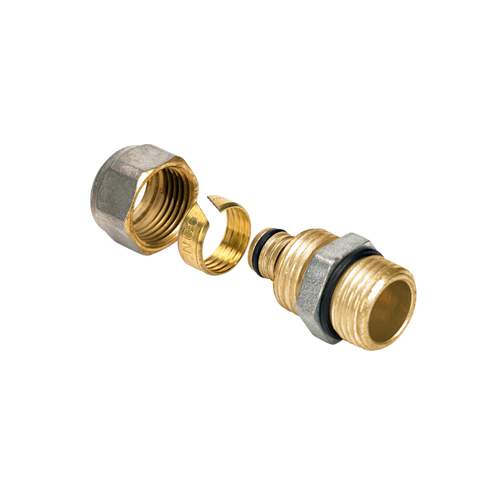 Henco puntstuk 32x1", knel x buitendraad, messing vernikkeld
