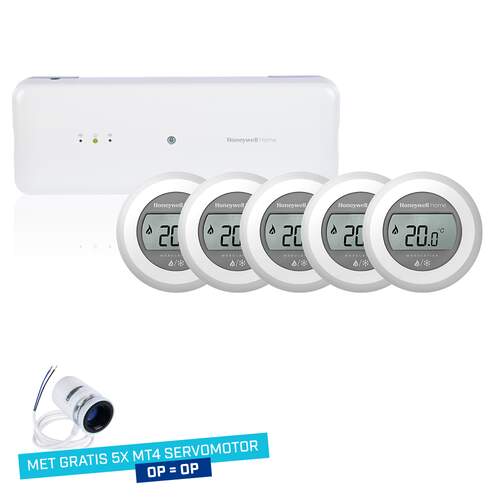 Honeywell Home UFH pakket HCC100 + Round, bedraad, verwarmen/koelen, met 5x Round modulation H/C en 5x MT4 servomotor