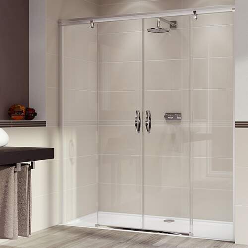 Huppe Aura Elegance schuifdeur 2-delig met vaste segmenten 170 x 190 cm zilvermat/helder met anti-plaque met soft-open/close functie