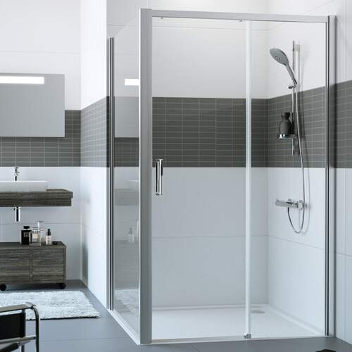 Huppe Classics 2 Easy Entry schuifdeur 1-delig 130 x 200 cm met vast segment zilvermat/helder met anti-plaque, bevestiging links