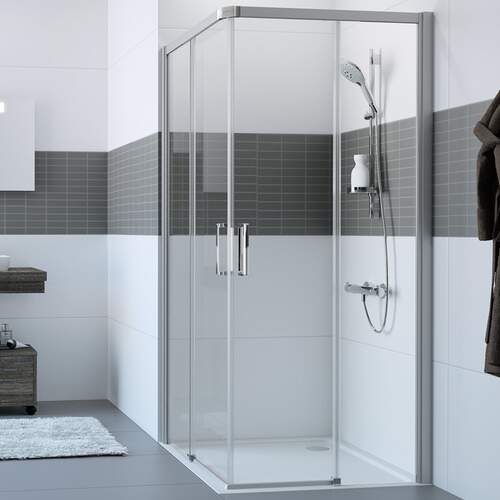Huppe Classics 2 EasyEntry hoekinstap met schuifdeur (2-delig) 100 x 100 x 200 cm zilvermat/helder met anti-plaque