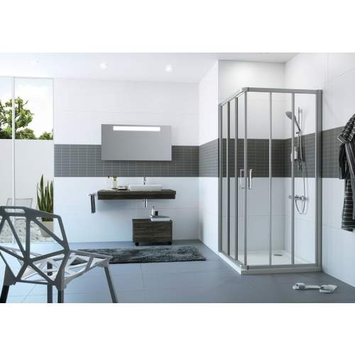 Huppe Classics 2 schuifdeur hoekinstap 3-delig 100 x 100 x 190 cm zilvermat/helder