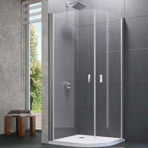 Huppe Design kwartrond zwaaideur (1 deel) 90 x 200 cm R:55 zilvermat/helder met anti-plaque (prijs per vleugel)