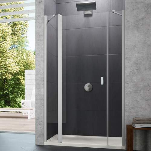 Huppe Design zwaaideur met vast segment en zijdeel in nis 100 x 190 cm chroomlook/helder met anti-plaque