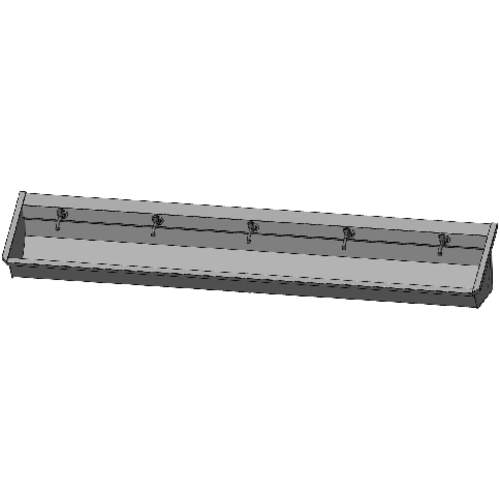 Intersan Sanilav 1.0 rvs wastrog 3000x430x490 mm voor 5 gebruikers inclusief voorgemonteerde leiding en muurkraan