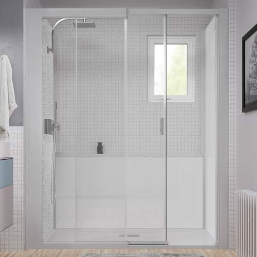 Met de Kinemagic design serie vervang je eenvoudig je bad in een comfortabele douchecabine voor het hele gezin. De Kinemagic design kan geleverd worden met schuifdeur, 2 draaideuren of een walk-in in helder of decor glas. De douchebak is extra vlak en heeft een hoogte van 3,8 cm. De douchekabine wordt geleverd met inbouwthermostaat, regendouche en handdouche.