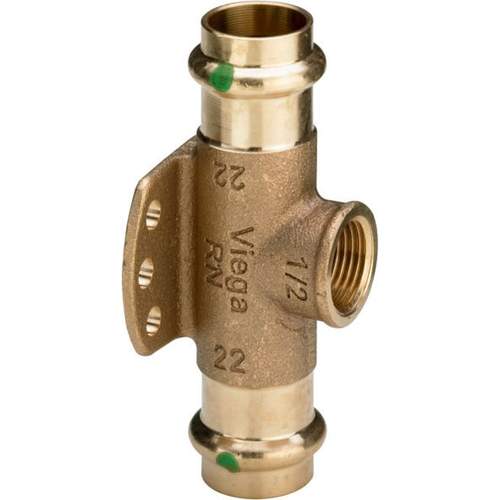 Viega Profipress muurplaat, t-stuk, 15 x 1/2" x 15 mm, pers x binnendraad x pers, brons, met sc-contur
