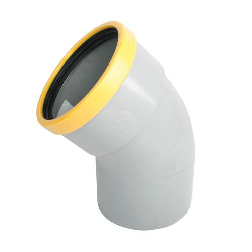 Wavin Wafix PVC bocht 30° 200 mm SN8 mof/spie met manchet grijs/goud