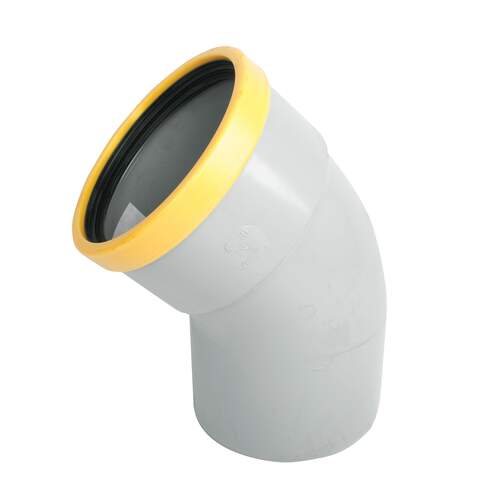 Wavin Wafix PVC bocht 45° 200 mm SN8 mof/spie met manchet grijs/goud