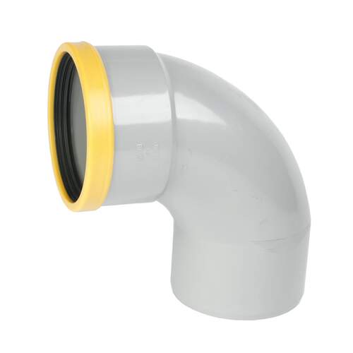 Wavin Wafix PVC bocht 88° 250 mm SN8 mof/spie met manchet grijs/goud