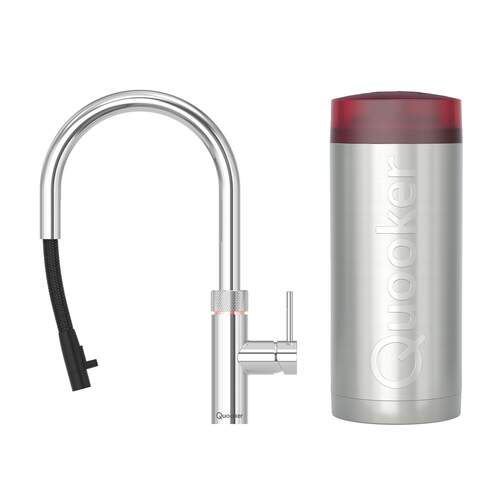 Quooker Combi+ Balg keukenboilercombinatie, inclusief Flex, koud, warm en kokend-water-kraan met kindveilige (dubbel)druk-draai bedieningsknop en uittrekbare perlator, chroom