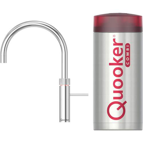 Quooker keukenboilercombinatie, inclusief Fusion Round, koud, warm en kokend-water-kraan met kindveilige (dubbel)druk-draai bedieningsknop, Chroom.