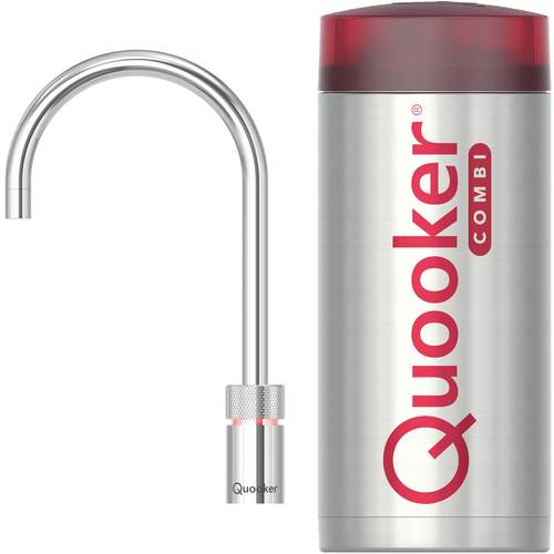 Quooker keukenboilercombinatie, inclusief Nordic Round, Single tap kokend-water-kraan met kindveilige (dubbel)druk-draai bedieningsknop, Chroom.