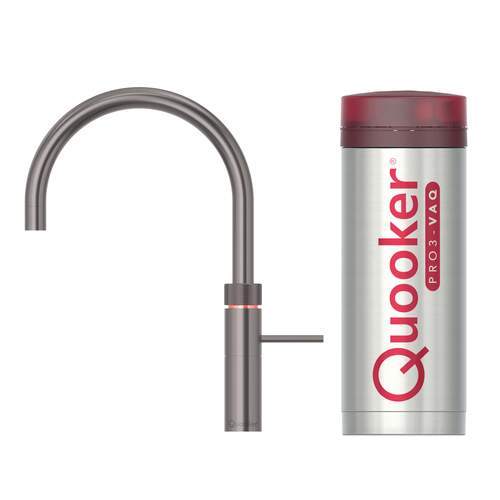 Quooker PRO 3, inclusief Fusion Round, koud, warm en kokend-water-kraan met kindveilige (dubbel)druk-draai bedieningsknop, Gunmetal opwarmtijd: 10 minuten.