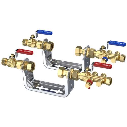 Raminex watermeterbeugel GWA-EA Collectief, Qn 1,5 m3/h, L=110 mm, rvs, laag model 82 mm, 15 mm knel x 15 mm knel, wartels 3/4"