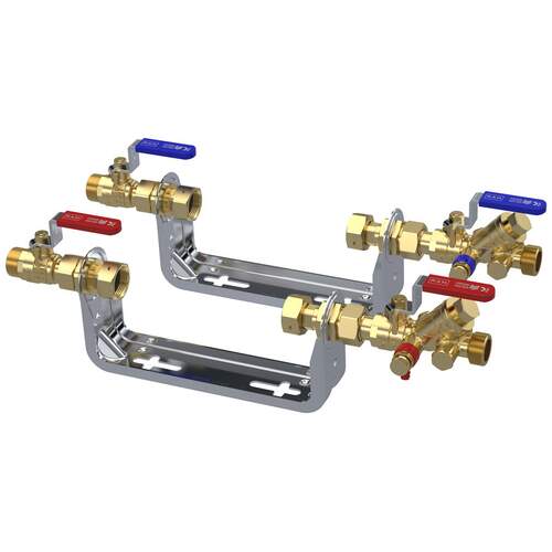 met geïntegreerde kogelkranen en terugstroombeveiliging klasse EA, controleerbare en vervangbare keerklep, watermeterkoppelingen, aftapper, bevestigingsmateriaal