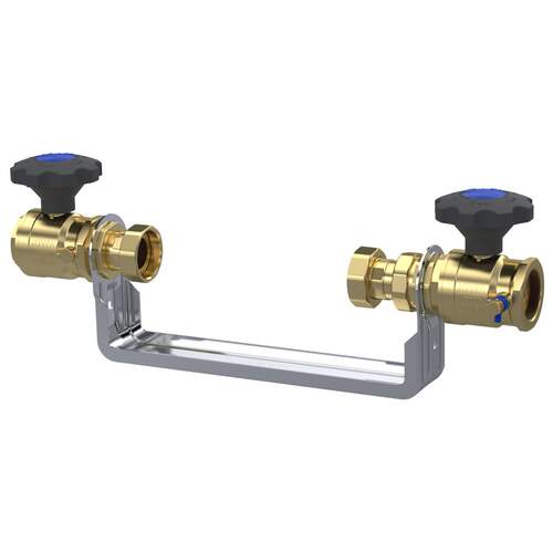 Raminex watermeterbeugel GWA set Qn 10,0 m3/h L=300 mm, verstelbaar model 90-132 mm, 2" binnendraad x 2" binnendraad, wartels 2"