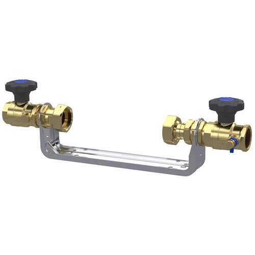 rvs watermeterbeugel met geïntegreerde kogelkranen en koppelingen, aftapper, bevestigingsmateriaal