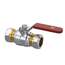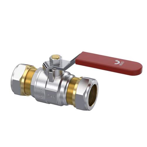 Raminex kogelkraan s.28, 22 x 22 mm, knel, DN20, PN10, messing vernikkeld, hendel met rode hoes en wit opschrift