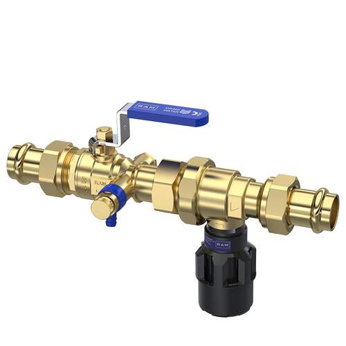 Raminex terugstroombeveiliging TBE-CA, 22 x 22 mm Viega Profipress, DN20, inclusief kogelafsluiter, aftapper en filterzeef