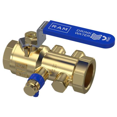 Raminex terugstroombeveiliging TBE-EA, 1" x 1", 2x binnendraad, DN25, PN10, met kogelafsluiter en aftapper