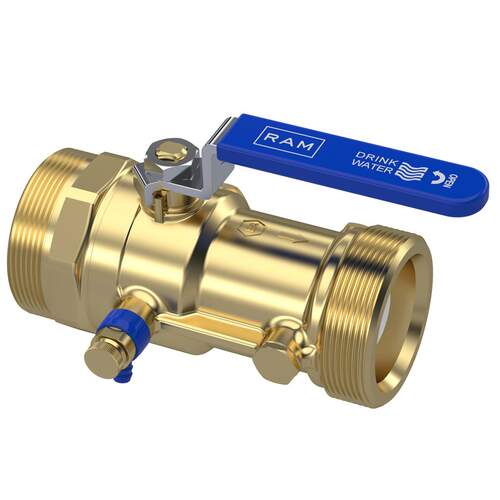 Raminex terugstroombeveiliging TBE-EA, Compact-XS, 2.3/8" x 2.3/8", 2x buitendraad, DN50, PN10, met kogelafsluiter en aftapper