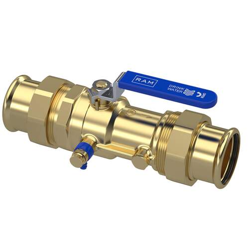 Raminex terugstroombeveiliging TBE-EA-XS, 54 x 54 mm Geberit Mapress, DN50R, PN10, met kogelafsluiter en aftapper