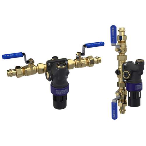 Raminex terugstroombeveiliging TBE-STBA type 100, 15 x 15 mm Viega Profipress, DN15, met filter en Easy Service cartridge, horizontale en verticale montage