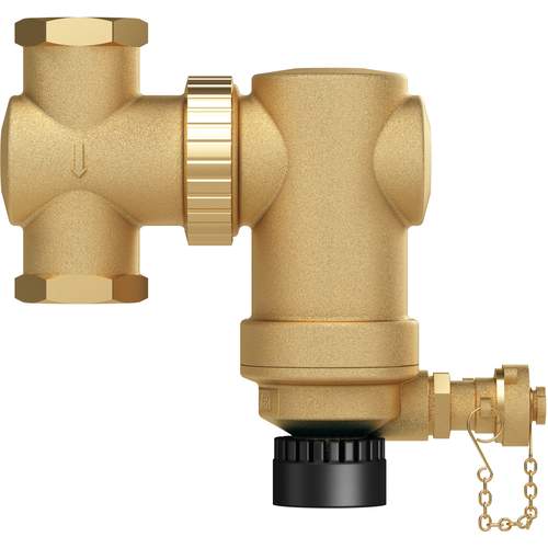Afscheider voor vuil en slib met 360° draaibare aansluiting voor verticale en horizontale buisleidingen in verwarmings- en koelwatersystemen of gesloten installatiesystemen die met vloeistof gevuld zijn.