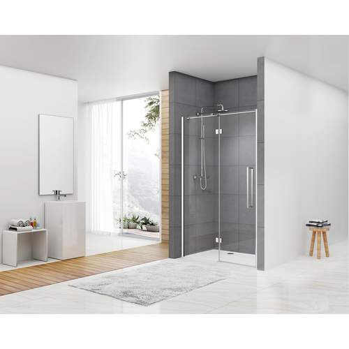 Van Rijn ST05 Nisdeur met vast deel 1070-1110 x 2000 helder glas 8 mm incl. glasbehandeling, chroom, incl. stabilisatiestang en greep